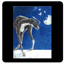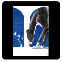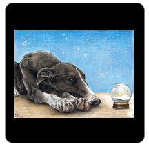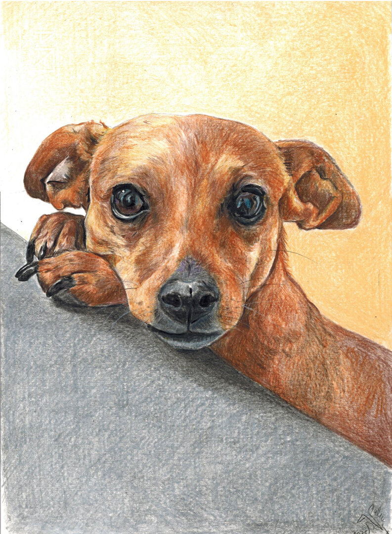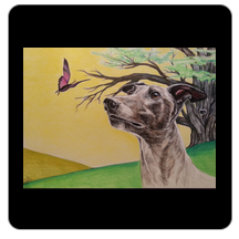 Attraverso lavori con il legno, sulla ceramica, sulla tela, resto però prima di tutto una ritrattista. Carta, matita, china o pastelli morbidi sono l'espressione che mi è più congeniale. E vicino ad essi, qualcosa di mio: un elemento, una farfalla, un sogno.